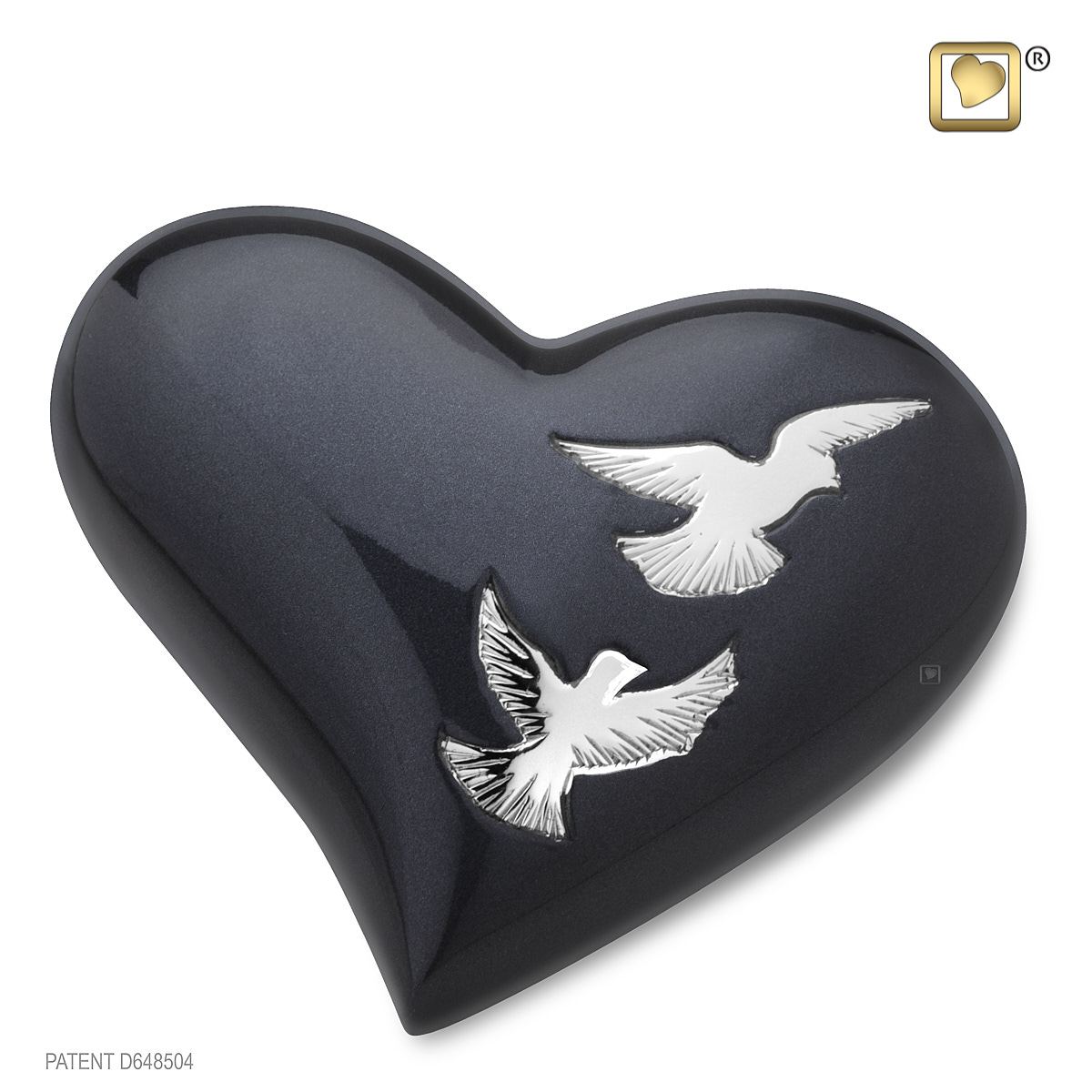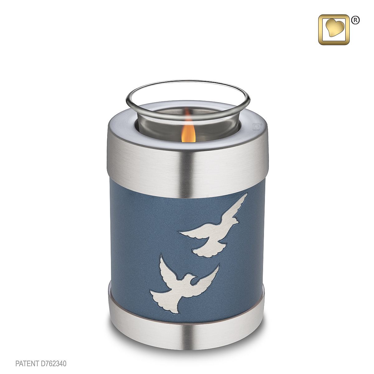 Keepsake urns are designed for display and can contain a small amount of cremated remains, a lock of hair, cemetery grave soil, or other appropriate small items. Each urn comes in a display box. See the LoveUrns catalog below for additional styles and colors. LoveUrns Keepsakes are $56, Star or Heart $72, Tealight $78.