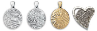 Fingerprint keepsakes are made in a variety of styles from several different materials. Select the image below to go to the manufacturer's web site. Wetzel and Son can take a finger print for you to personalize your selection.
